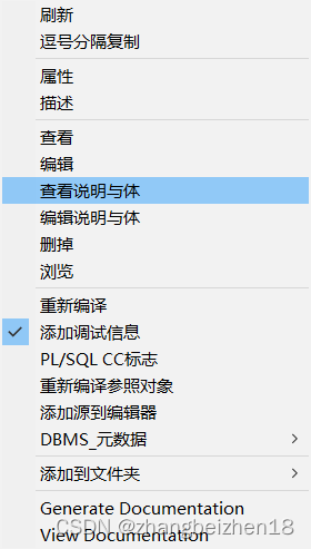 5.1 右键包名称,选择菜单:查看说明与体。即进入包里存储过程。