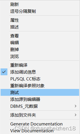 5.2 右键存储过程名称,选择测试,即进入测试窗口。