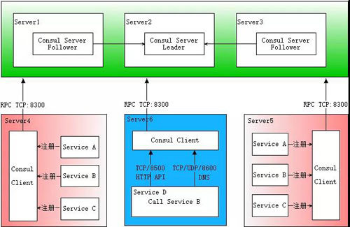 服务发现组件:Consul中的服务发现是通过一组Agent和Server实现的。Agent是每个主机上运行的代理,用于与服务交互并报告本地运行状况。Server是负责在Consul集群中运行Raft算法的节点,以实现高可用性。