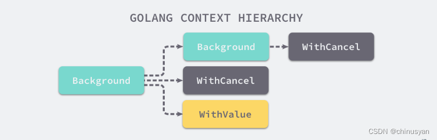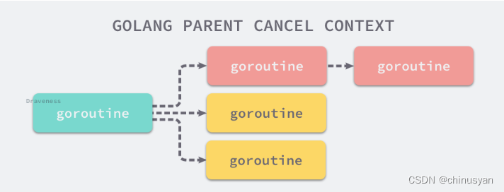 中衍生出一个新的子上下文并返回用于取消该上下文的函数。一旦我们执行返回的取消函数,当前上下文以及它的子上下文都会被取消,所有的 Goroutine 都会同步收到这一取消信号。