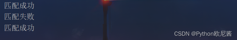 #输出结果:<re.Match object; span=(0, 1), match='@'> @示例2:(匹配失败)