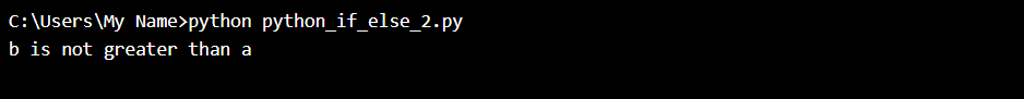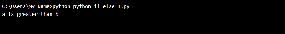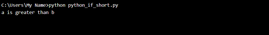 在这个例子中,a 大于 b,所以第一个条件不成立,elif 条件也不成立,所以我们转到 else 条件并打印到屏幕“a 大于 b”。