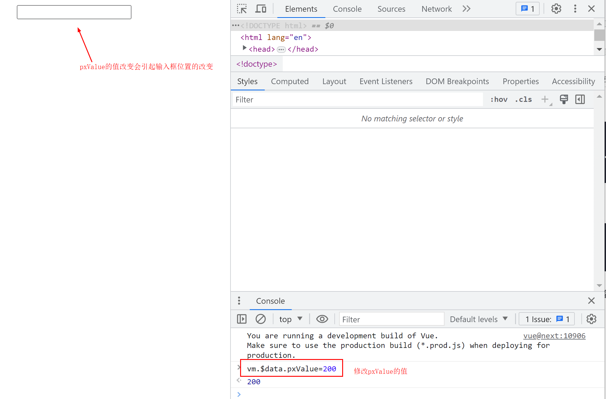 v-pos:left="pxValue"的方式确定输入框是距离左边还是右边或者距离其他参照物。然后自定义指令的时候,拿到属性传过来的值和pxValue,改变输入框位置: