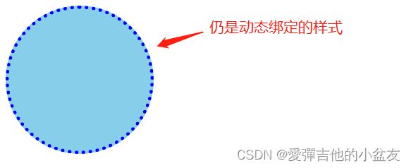 <template> <div :style="squareStyle"> </div> </template> <script setup> import {ref} from 'vue' //声明一个常量或变量即可实现样式动态绑定 const squareStyle = ref({ width: '200px', height: '200px', backgroundColor: 'skyblue', border: '5px dotted blue', borderRadius: '110px' }) </script>