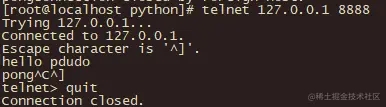 代码在运行之后,我们可以使用telnet来访问一下,它会打印客户端信息,例如: