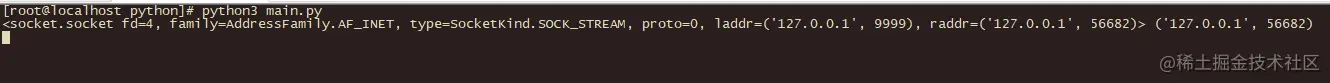 print(client,addr)上述代码,首先引入socket模块,而后定义了一个socket函数,传入必要参数,该函数会返回一个套接字对象给我们。