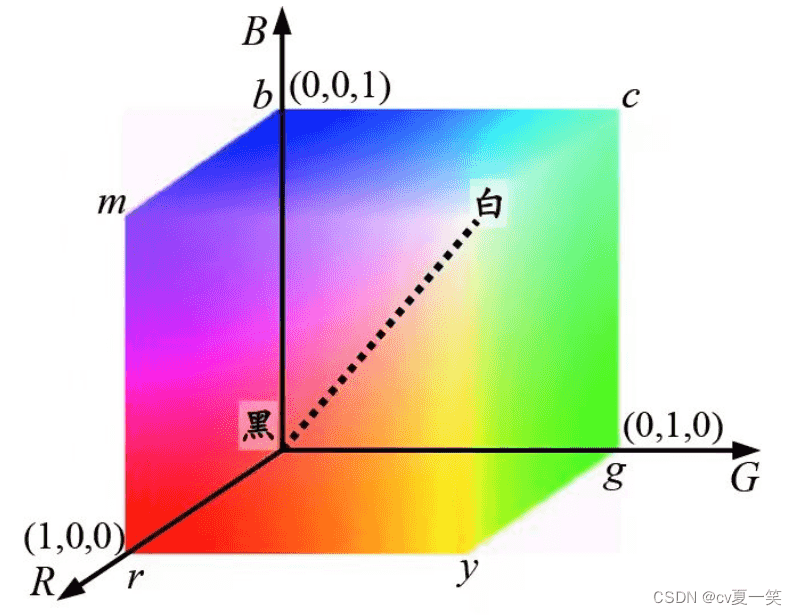 - 原点为黑色,离原点最远的顶点为白色,这两点连线上为深浅不同的灰色