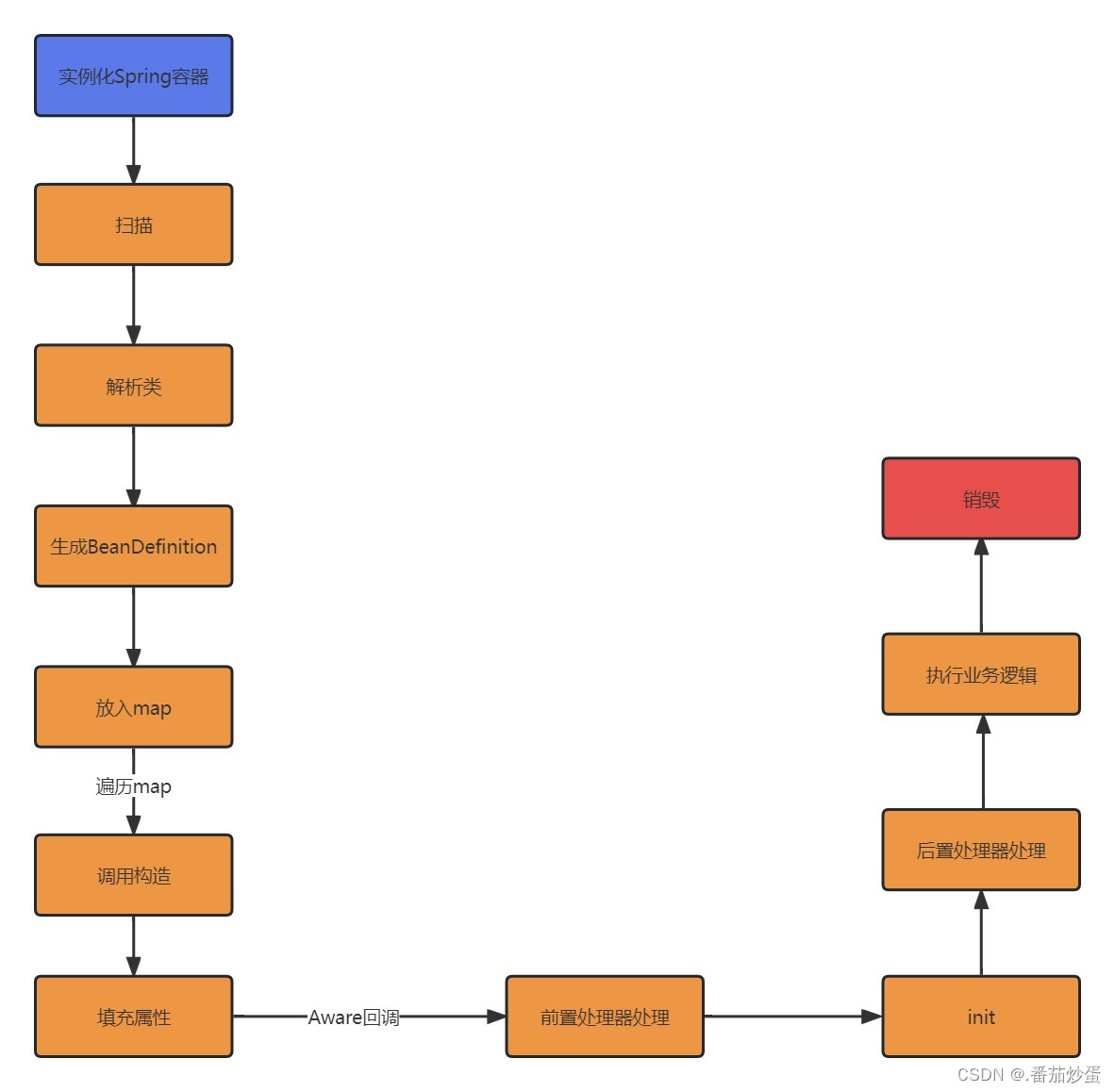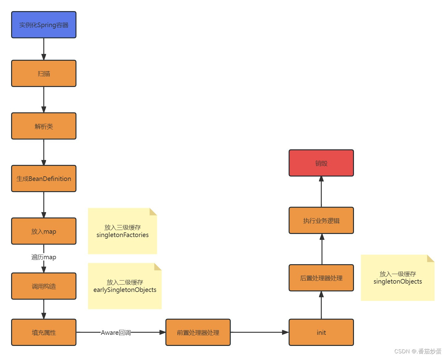 Spring是如何解决循环依赖问题的?上述代码中对象的生命周期就两个:创建对象和属性填充,而Spring涉及到对象生命周期的方法就很多了,简单举例,如下图:
