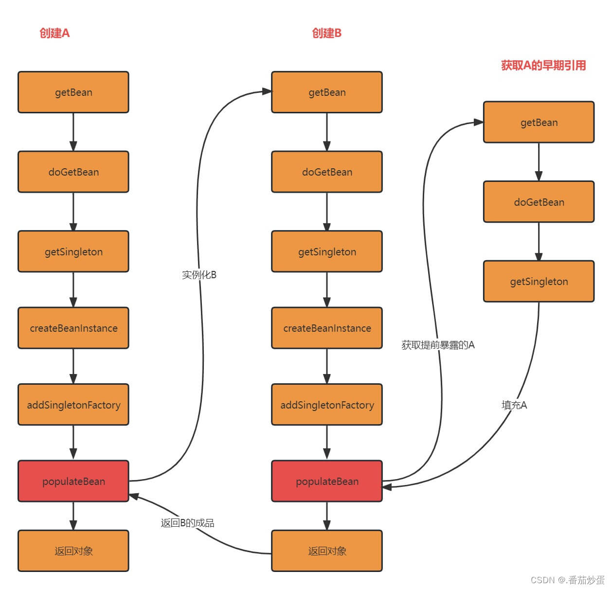 对应到源码中具体处理循环依赖的流程如下: