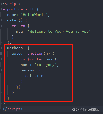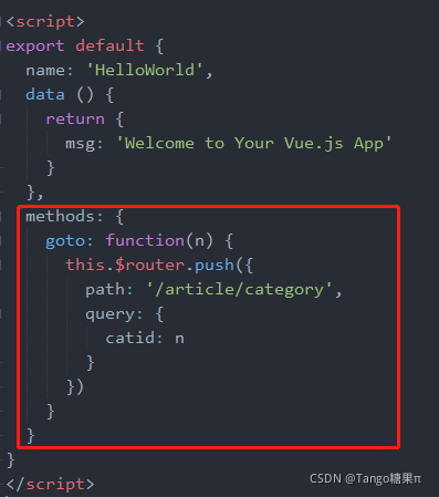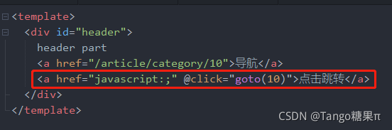 第二步: 在header.vue里,通过@click方法实现push函数调用