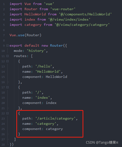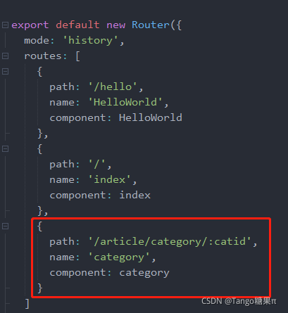 第一步:在router里面的index.js文件中设置category路由路径和参数