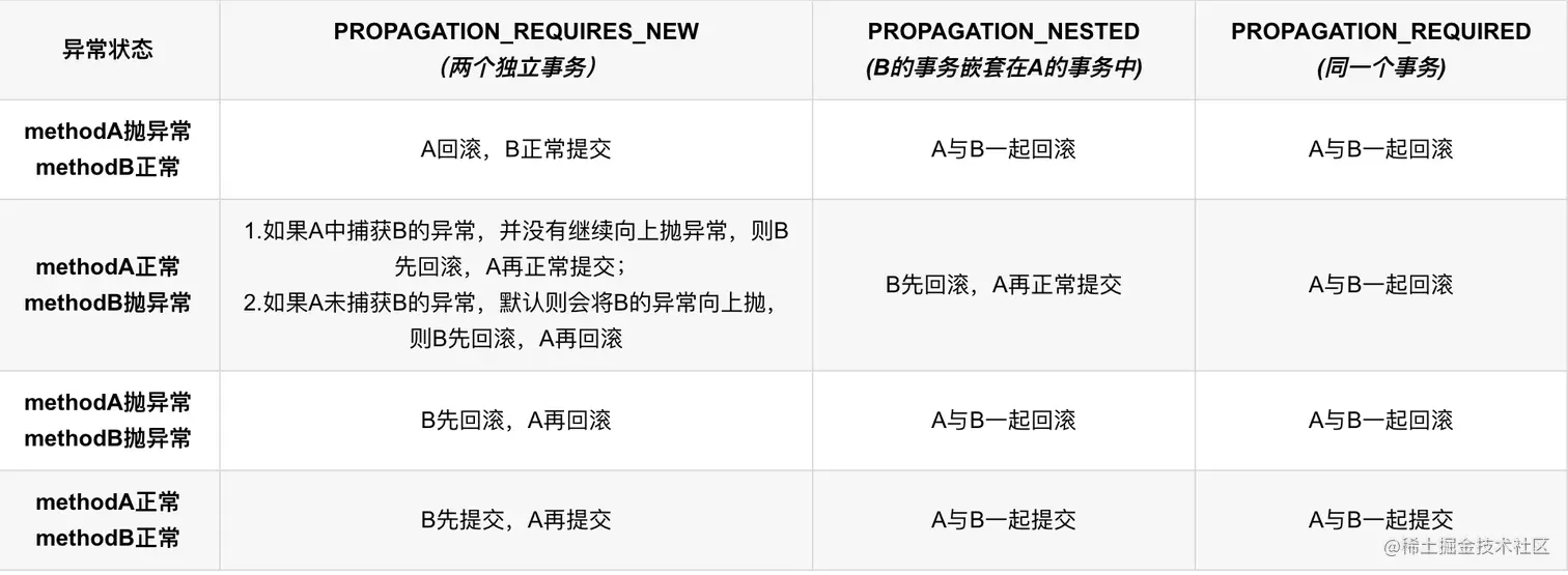 serviceA.methodA()以PROPAGATION_REQUIRED修饰; - 定义