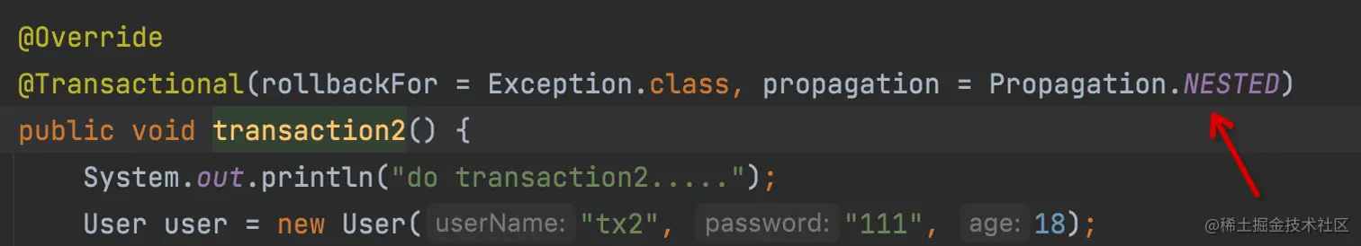1.在类SecondTransactionService定义一个简单接口transaction2,插入一个用户,同时必然会抛出错误