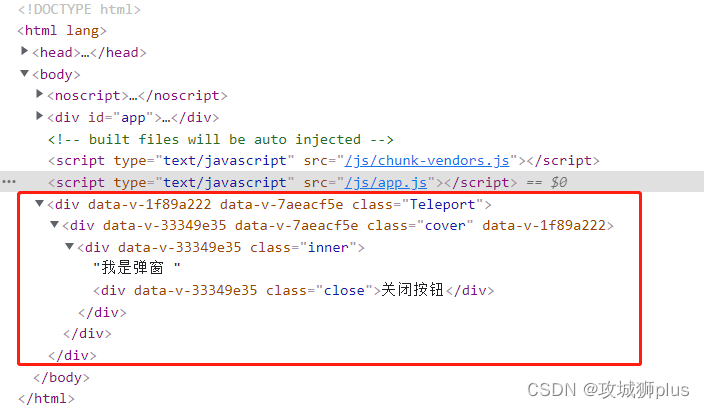 在Vue3中<Teleport> 是一个内置组件,使我们可以将一个组件的一部分模板“传送”到该组件的 DOM 层次结构之外的 DOM 节点中;现在在vue2实现一下效果:将组件挂载到body上