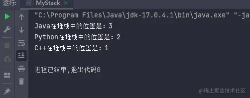 System.out.println("Python在堆栈中的位置是:" + index2);