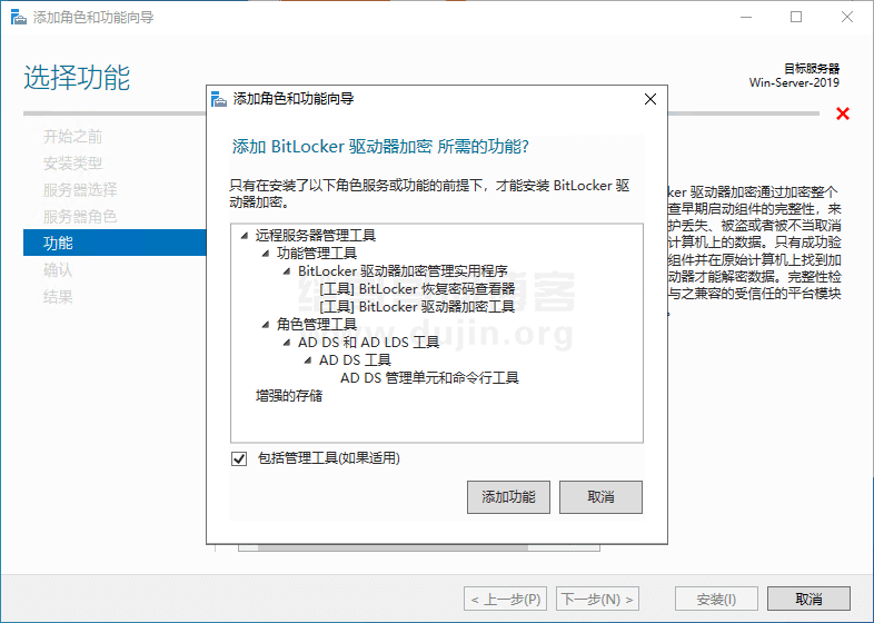 当勾选BitLocker 驱动器加密,会弹出相关的介绍,如下图所示:
