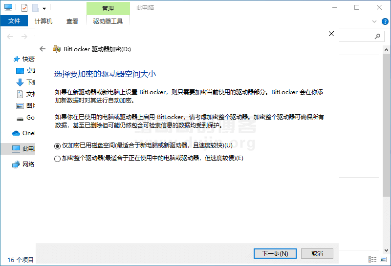 选择要加密的驱动器空间大小,这个小伙伴们根据自己的需求进行选择,下面的说明写的已经非常清楚了,缙哥哥也不再赘述了。