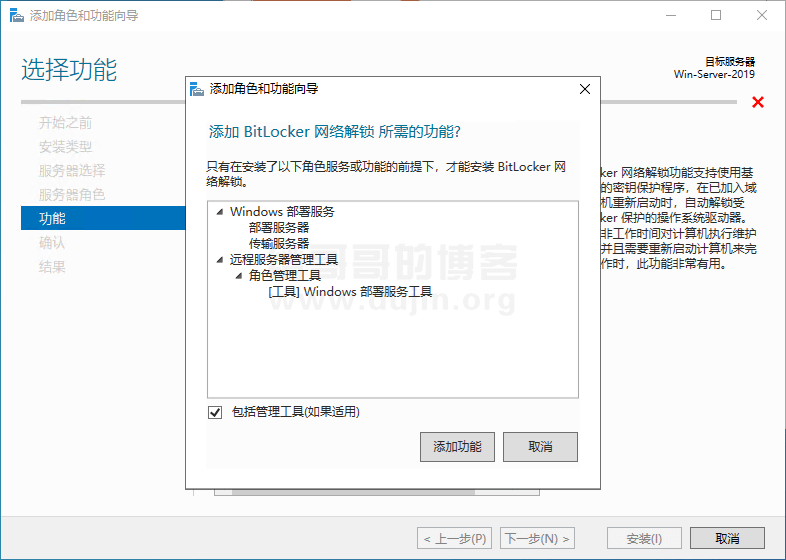 当勾选BitLocker 网络解锁,会弹出相关的介绍,如下图所示: