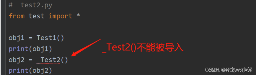 # test2.py import test obj1 = test.Test1() print(obj1) obj2 = test._Test2() print(obj2)