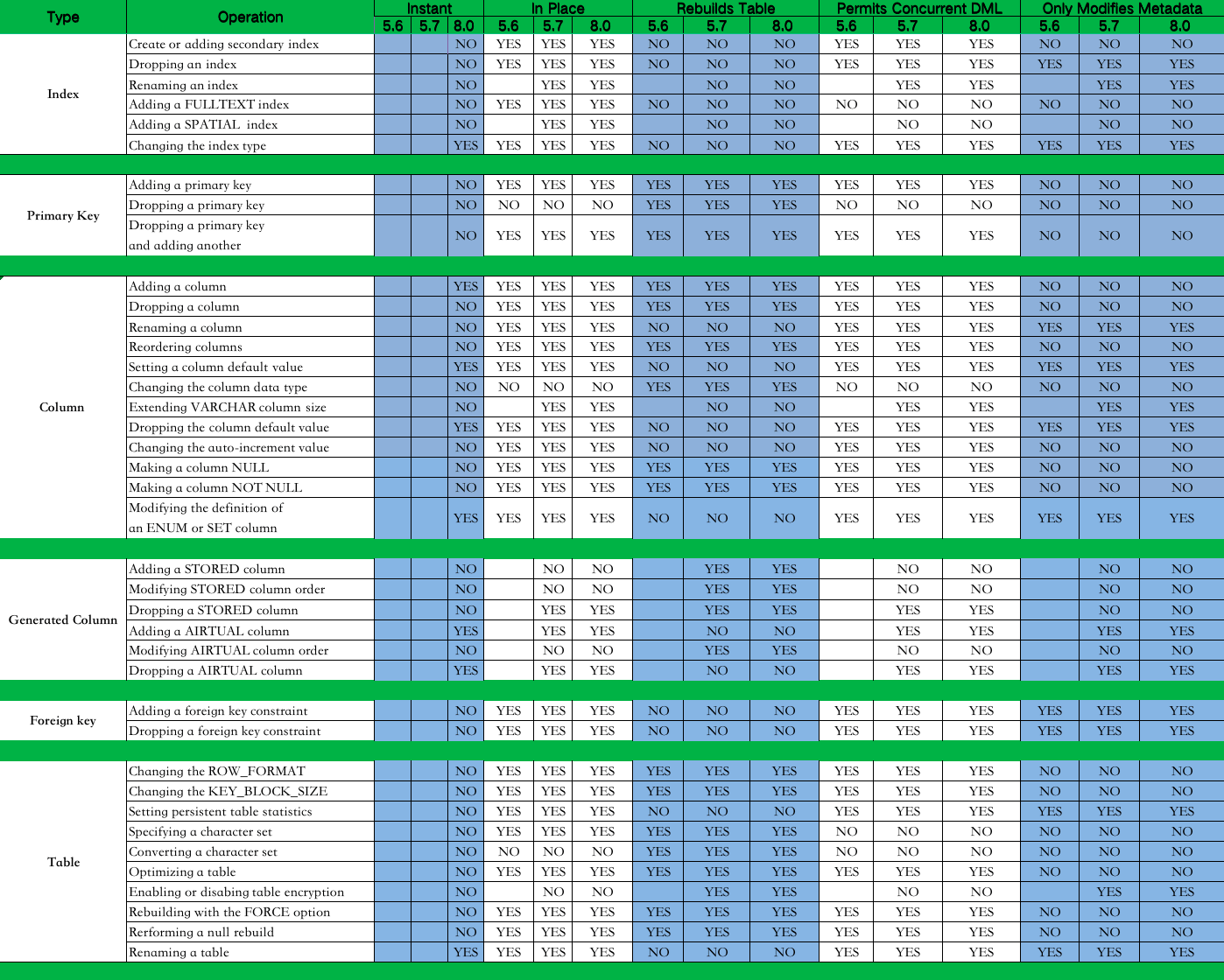 | OnlineDDL | 原生,使用中间临时表 | ALGORITHM=COPY时,会阻塞DML,推荐版本>MySQL5.7 | 5星 |