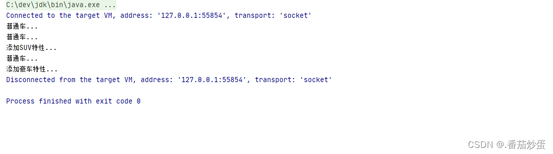 示例代码很好地展示了装饰模式的优雅之处,因为我们可以非常轻松地为基本汽车对象添加新的特性,而不需要修改现有代码.基于Car类定义了一个组件接口,然后定义了一个BasicCar类作为具体组件.接着,我们定义了一个CarDecoator类,它是一个抽象装饰器类,包含一个Car类型的实例,同时实现了组件接口.最后定义了SuvCar和LuxuryCar,他们都是扩展自CarDecoator类,用来添加SUV和豪车的特性.