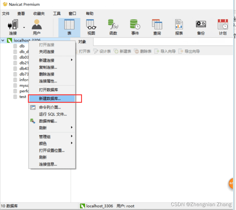 1:打开navicat后,点开localhost_3036,右击点击新建数据库: