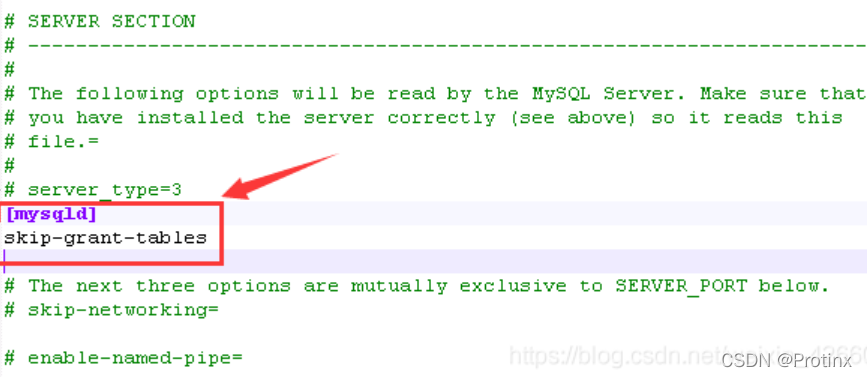 1、找到mysql的my.ini文件,在mysqld关键字下面添加skip-grant-tables,如下图所示:
