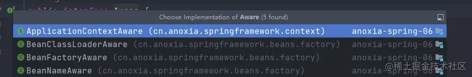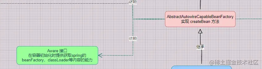 spring 对bean的创建过程做了很完整的封装。但是提供了非常多的扩展接口,供我们使用。这一节主要是实现spring提供的获取 beanFactory,classLoader 等属性的能力。 在我们开发过程中我们经常会使用到 ApplicationContextAware接口,来获取到 spring的上下文。来完成对bean的获取,当拿到了BeanFactory以后,我们能做的东西就多起来了,我们可以通过的spring工厂获取到我们需要的类,等等。