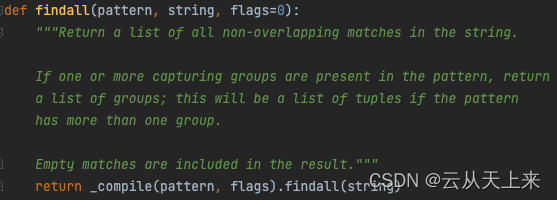 由函数原型代码可知,findall() 函数存在三个参数: