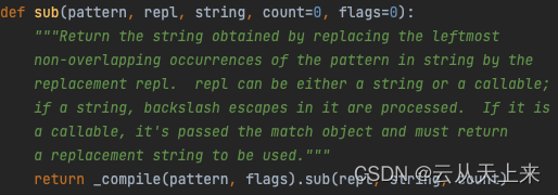 由函数原型代码可知,re.sub() 函数存在五个参数: