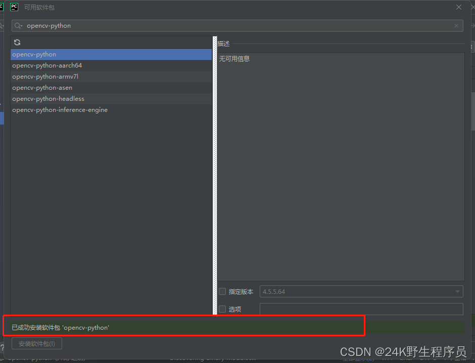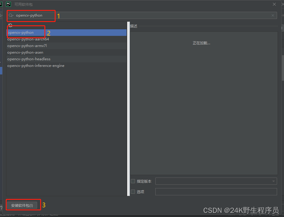 在搜索框里输入要下载的第三方库名称(全称),这里拿cv2演示