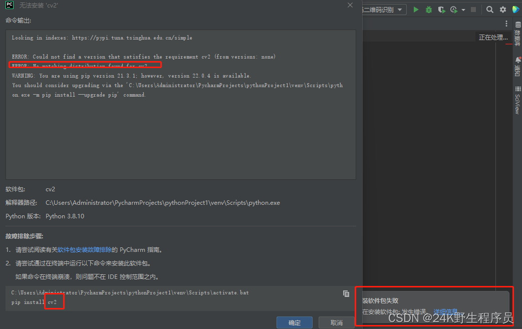首先代表性的第三方库就是opencv-python,他在导入的时候名称是cv2,我管这种的叫做表里不一
