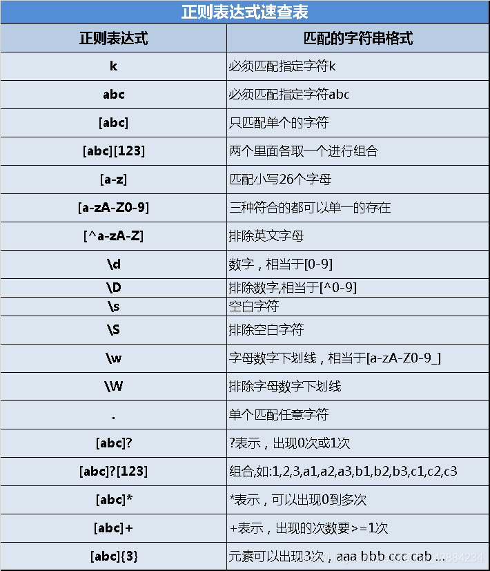 含义:正确字符串的格式,常用来判断用户输入的内容是否符合格式的要求,注意是严格区分大小写的。