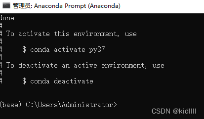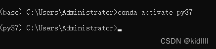 想使用刚刚创建的py37环境进行编程,需要激活进入py37这个环境,命令 conda activate py37