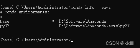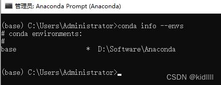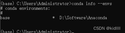命令 conda info --envs 查看已有的环境,目前我们只有base环境