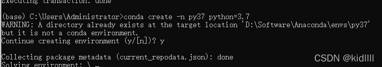 例如新建一个名为py37的环境,并且环境中python版本为python3.7,输入以下命令进行新建。