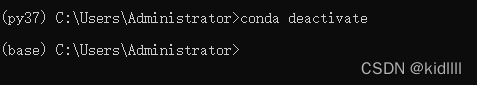 命令 conda deactivate,退出当前环境,回到base中