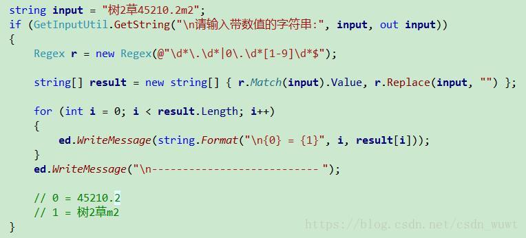 if (GetInputUtil.GetString("\n请输入带数值的字符串:", input, out input))