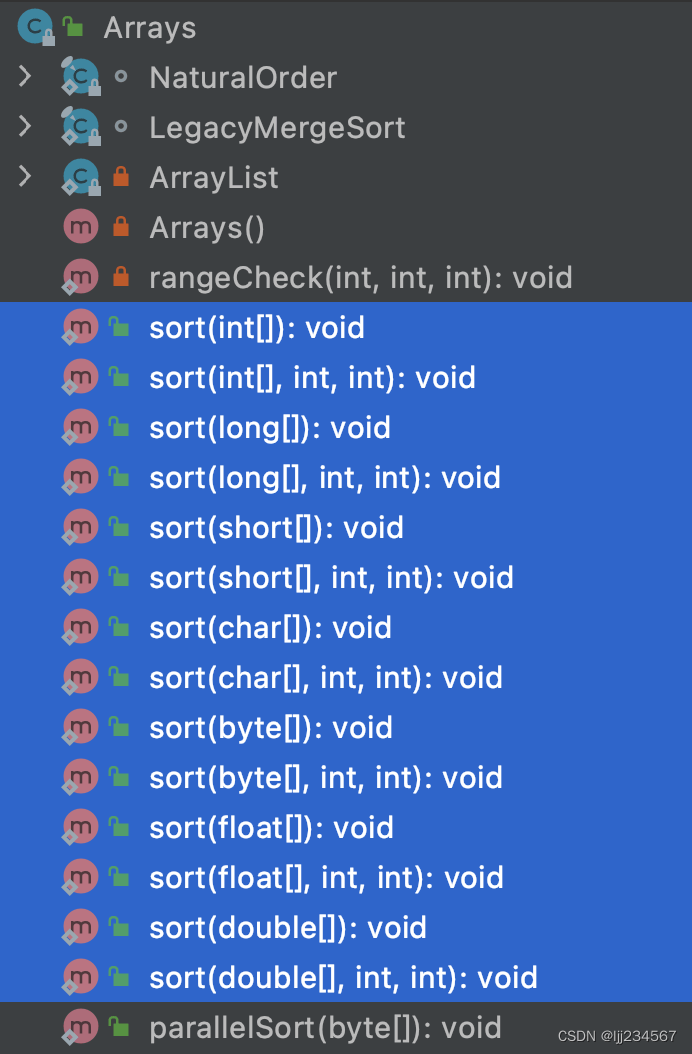 Arrays.sort()重载了很多方法,支持多种数据类型的排序。