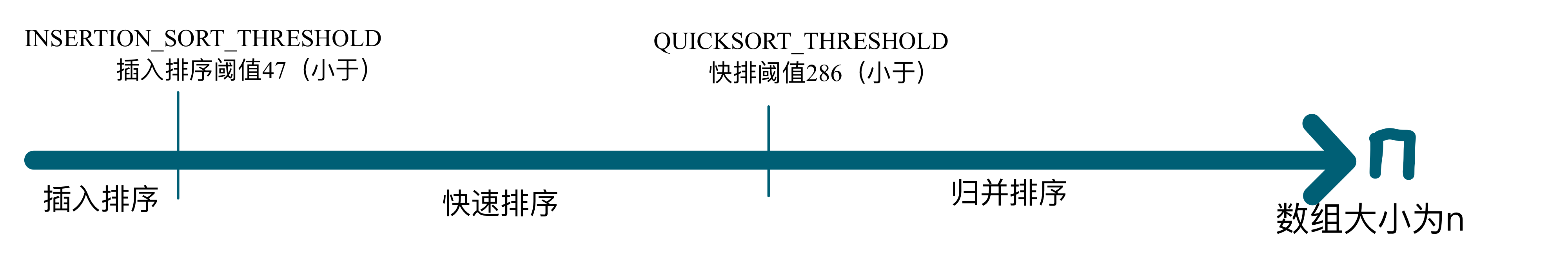 简单来说,会先计算需要排序的数组长度为n,再根据n的大小及数组元素类型来决定使用什么排序。