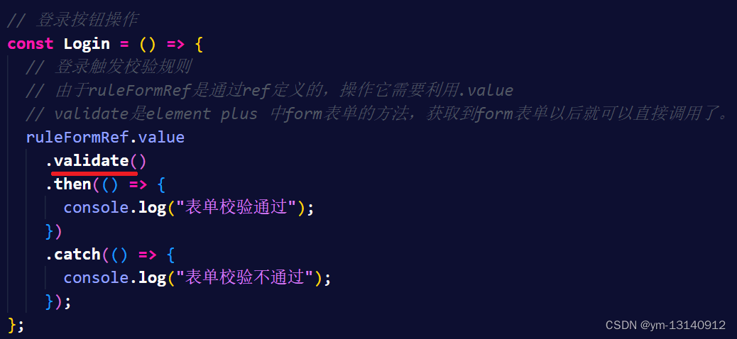 这里利用Element Plus的form中的validate方法对整个表单进校验。