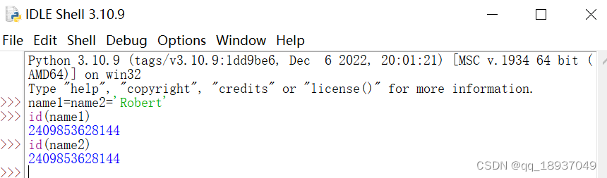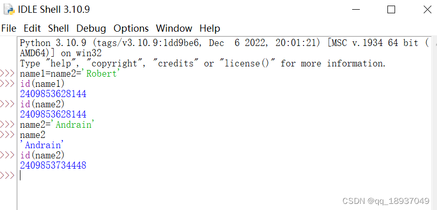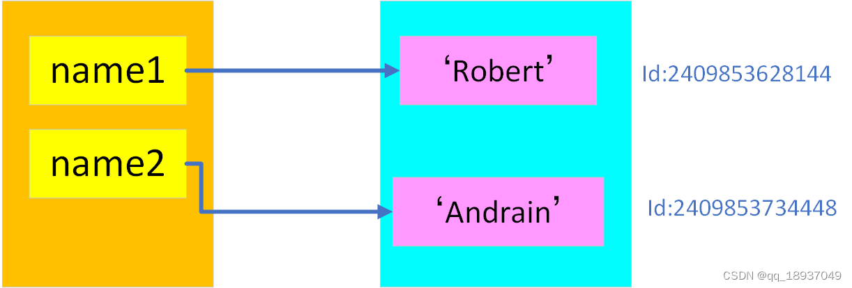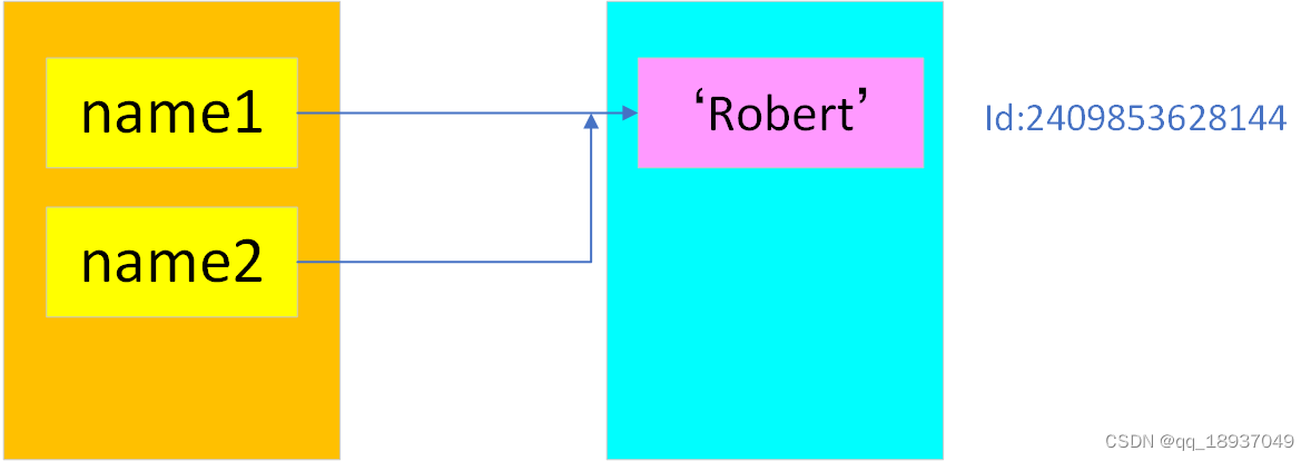 其中,id(name2)函数是求解变量name2所指向的内存地址。