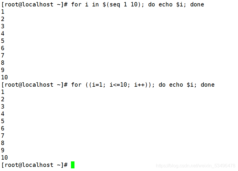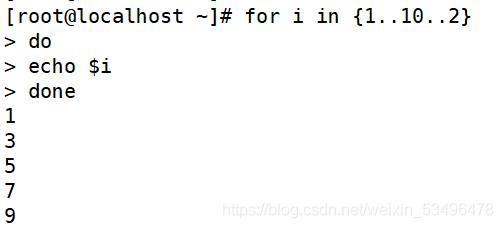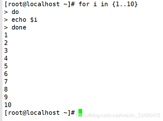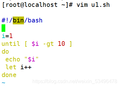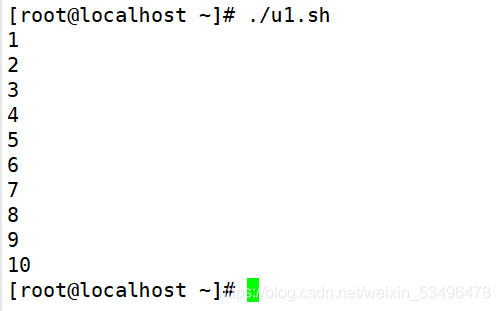 #显示1-10的整数 #!/bin/bash i=1 until [ $i -gt 10 ] do echo "$i" let i++ done
