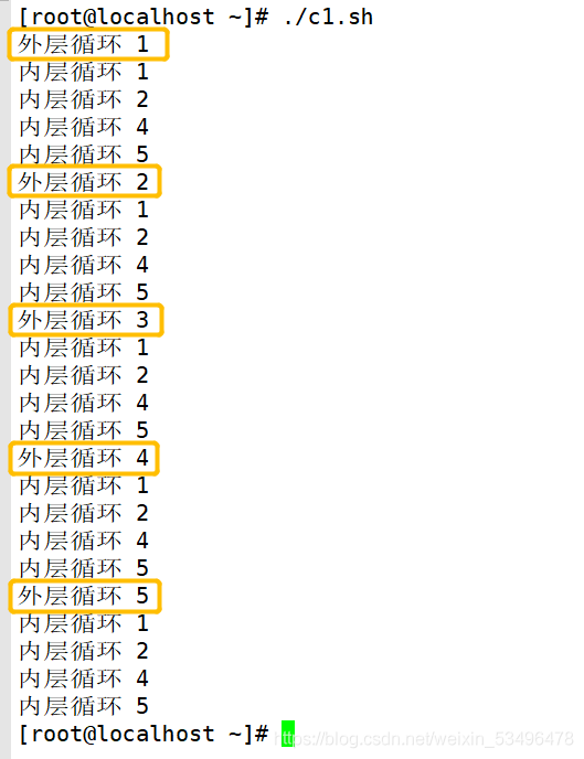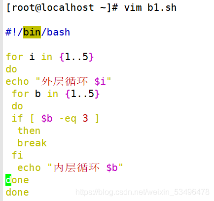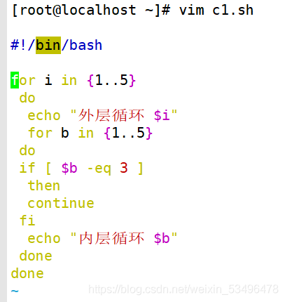 continue中止某次循环中的命令,但不会完全中止整个命令