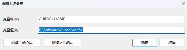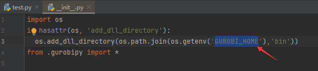 1.ctrl+左键点击gurobipy,找到环境变量的名称