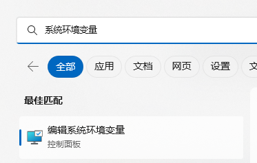 2.在Windows搜索栏中输入“系统环境变量”并打开,也可以在控制面板中搜索找到