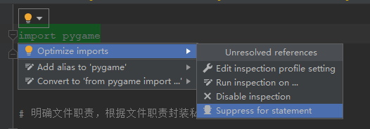 我的解决方法:将鼠标移动到那行代码,点击出现提示“Unused import statement”表示import声明不可用,左边同时出现黄色小灯泡,将鼠标移动至黄色小灯泡那里,会出现向下箭头,点击箭头出现下拉菜单,继续点击第一条“Optimize imports”(切记要点击的是最右边的三角号,不是这一整行,否则会出错),右面选择第四个“Suppress for statement”,即可。