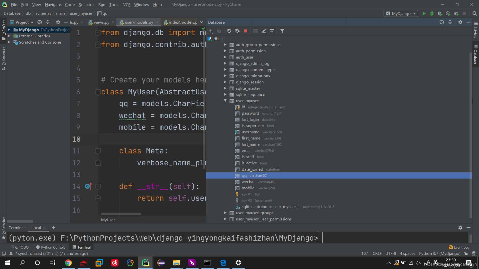 其中AbstractBaseUser在文件MyDjango\venv\Scripts\pyton.exe\Lib\site-packages\django\contrib\auth\base_user.py中: