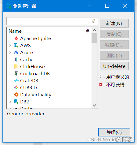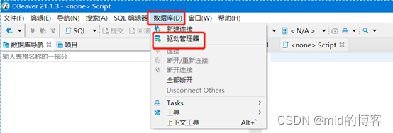 2.3、选择“数据库”-“驱动管理器”,然后点击“新建”
