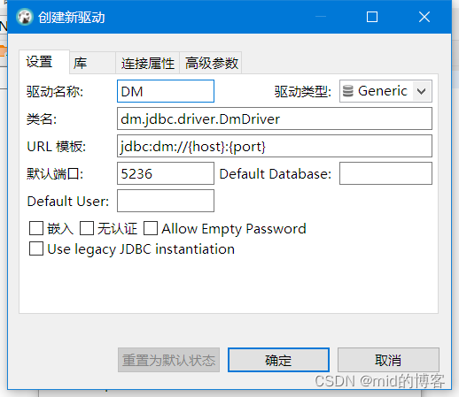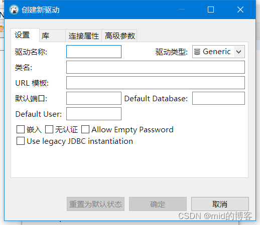 2.4、创建新驱动-“设置”界面填写“驱动名称”,“类名”,“URL模板”,“默认端口”